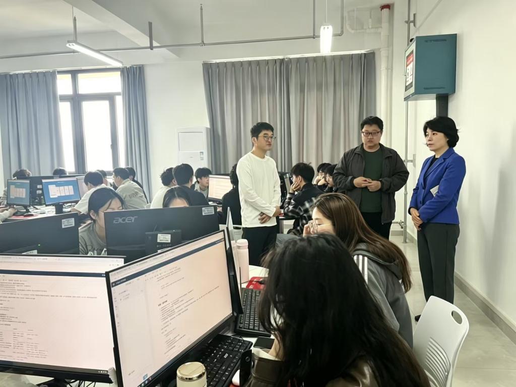 座谈会结束后,李利英一行深入各实训教室、功能实训室,实地察看实训设备运行状态、教学软件适配情况,近距离观摩学生实训操作过程,详细询问学生实训感受与学习收获。针对实训过程中发现的软件适配性、操作实用性等问题,李利英与现场实训师生深入探讨解决方案,明确整改方向与时限,切实把调研成果转化为推动实训教学质量提升的具体举措。